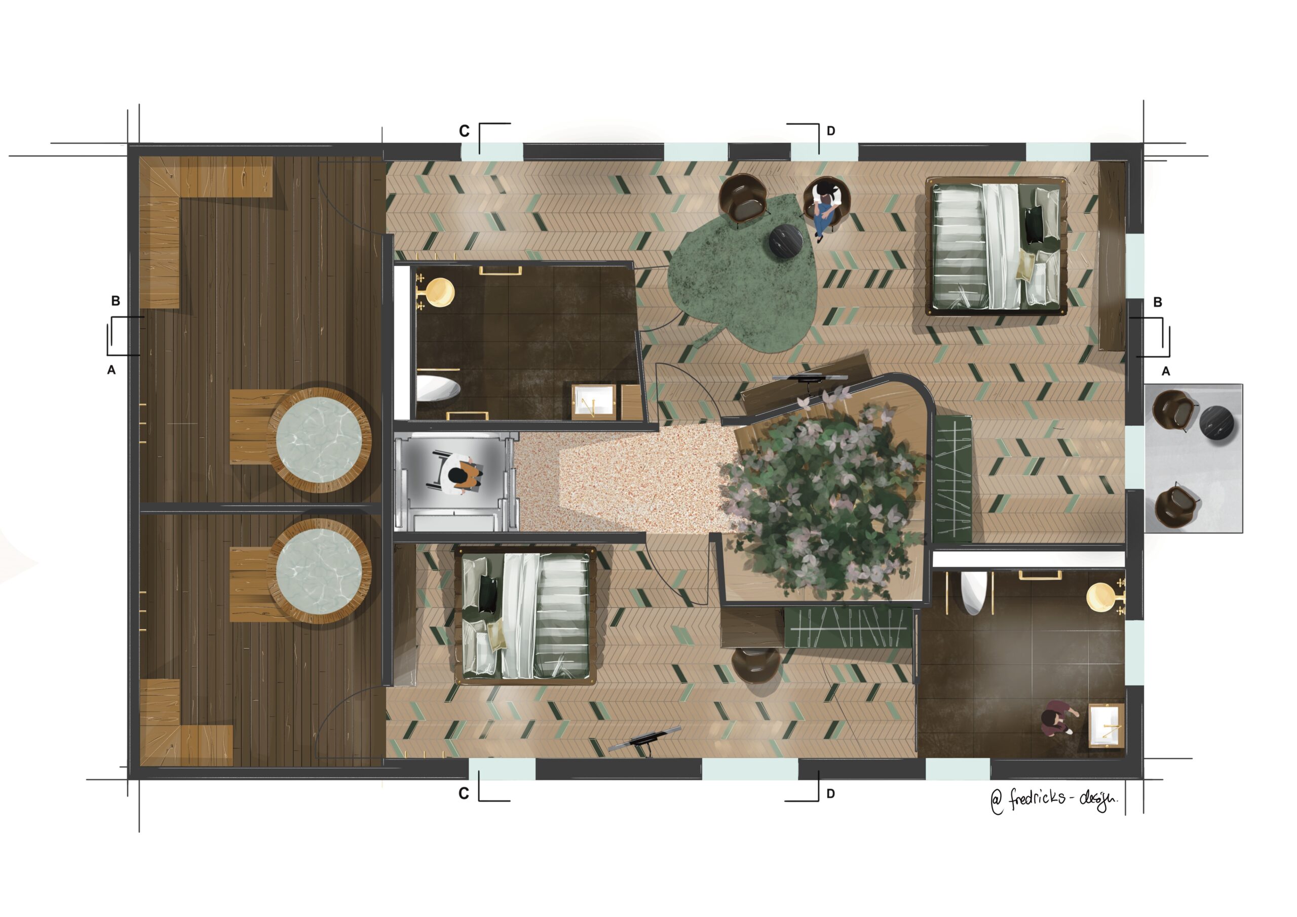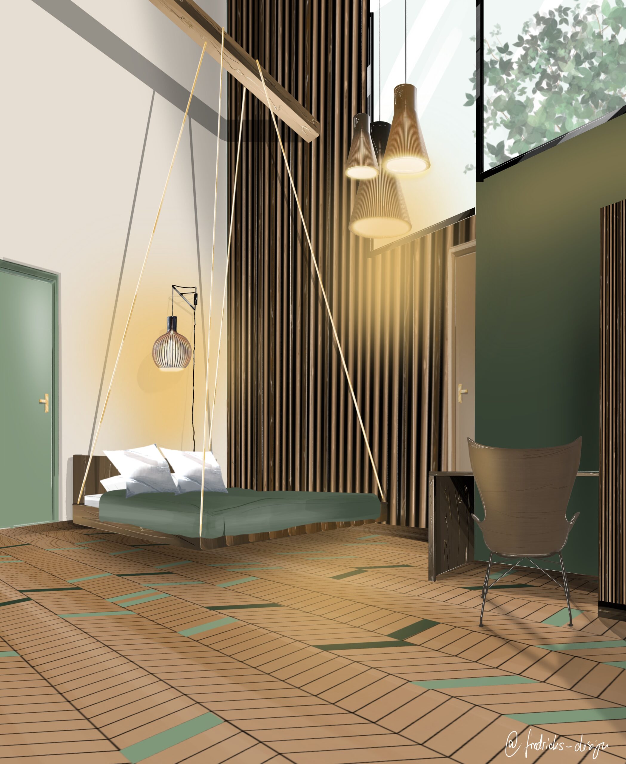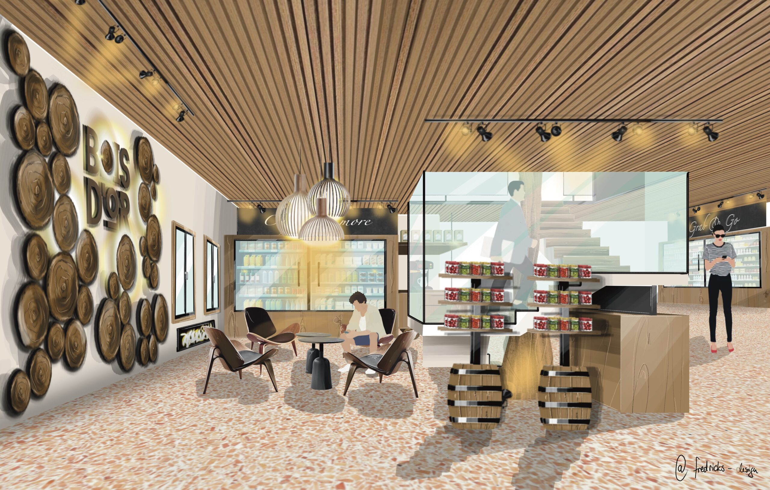 Mission : Conception d’un hôtel autonome avec épicerie « grab & go », intégration des technologies sans personnel, valorisation de l’identité historique d’une ancienne menuiserie de village.