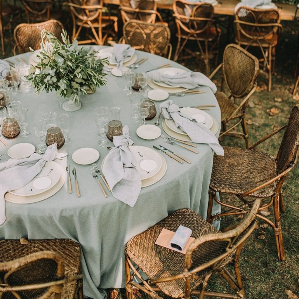 Pour obtenir cet effet jusqu’au sol parfait, mesurez le diamètre de la table et ajoutez le double de la hauteur, soit 150 cm en général. Par exemple, pour une table de 120 cm de diamètre, il vous faudra une nappe de 270 cm pour une retombée élégante qui caresse le sol.