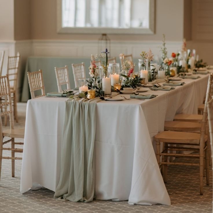 Misez sur la cohérence des dimensions : Rien n’est plus élégant qu’une salle où toutes les tables sont habillées de manière uniforme. Variez les dimensions seulement si les tables sont de formes différentes.