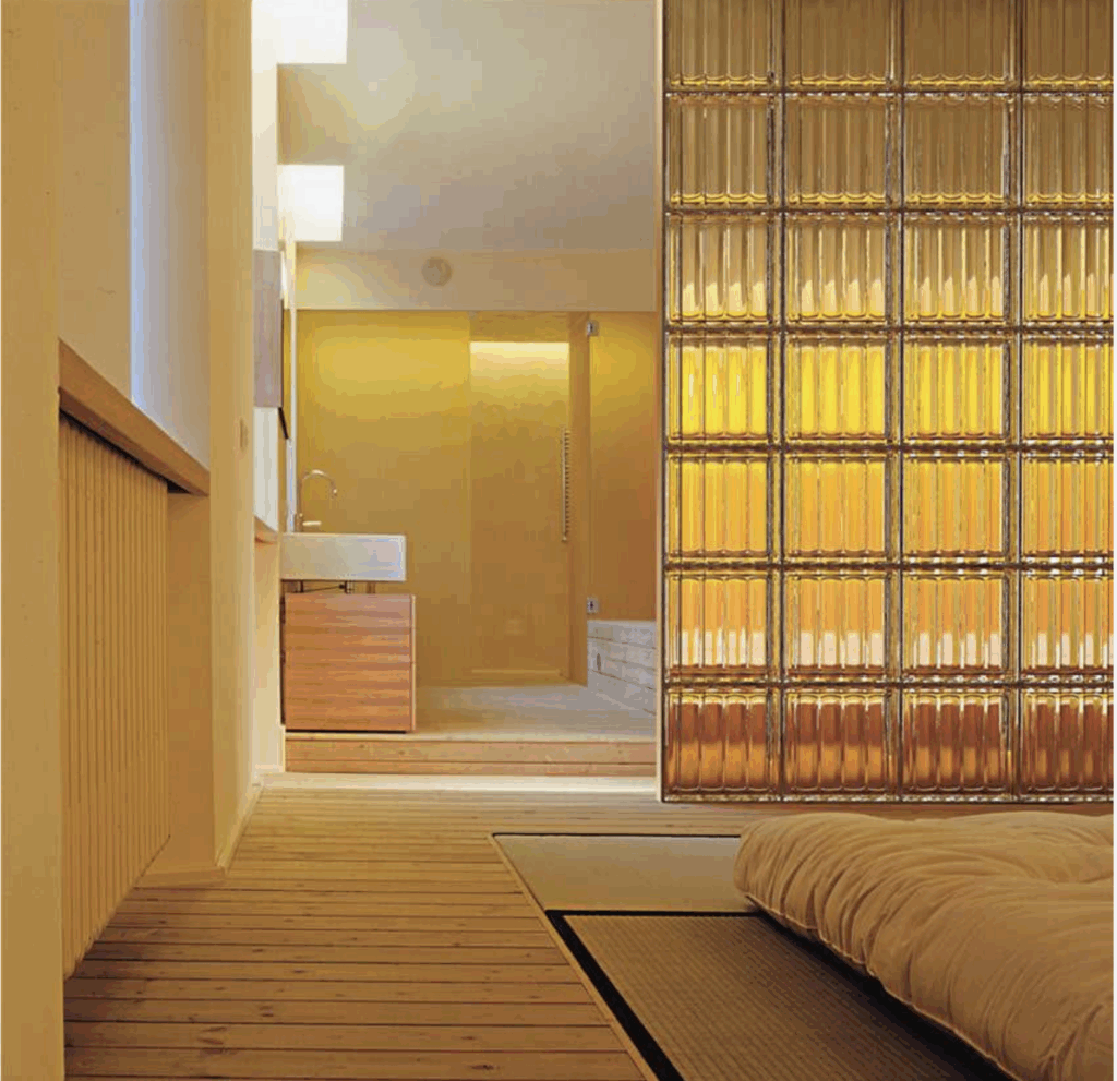 Un mur semi-transparent en briques de verre dans une pièce peut créer une fusion avec l’extérieur sans sacrifier sa privacité.