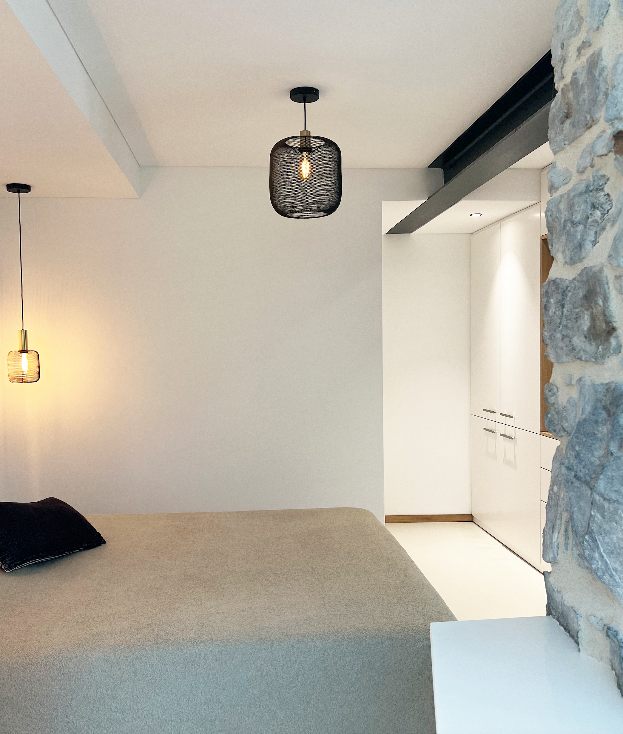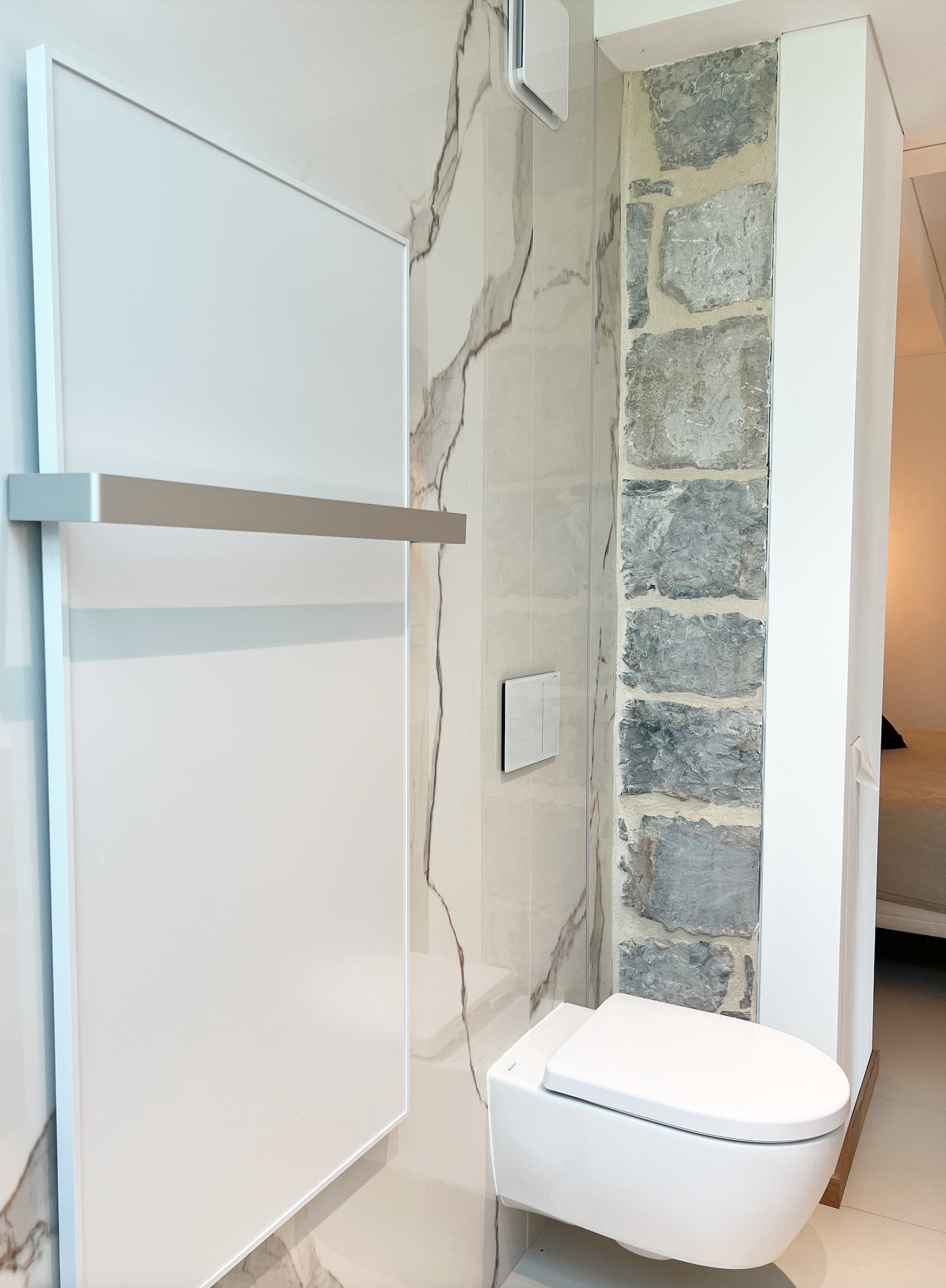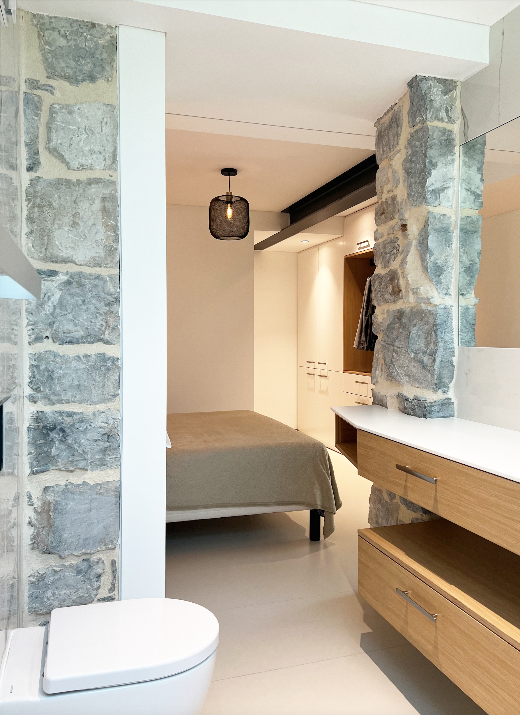 Une rénovation audacieuse où le charme brut de la pierre rencontre la modernité du design contemporain.