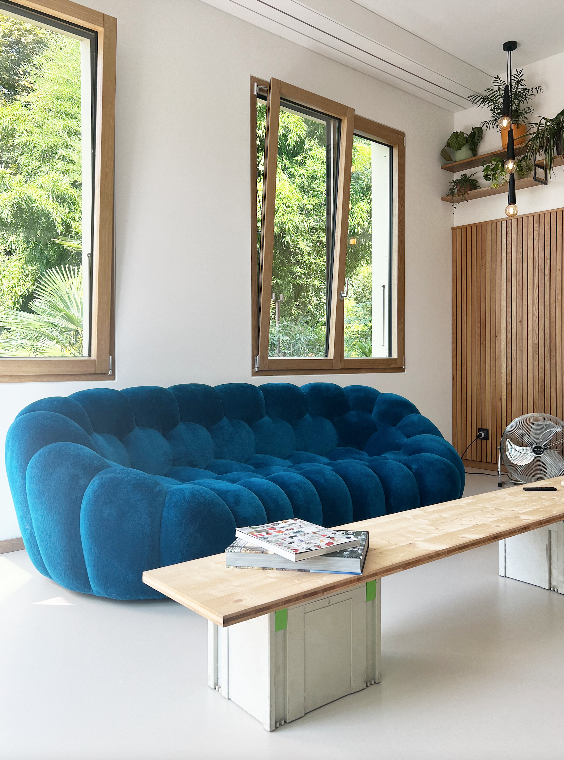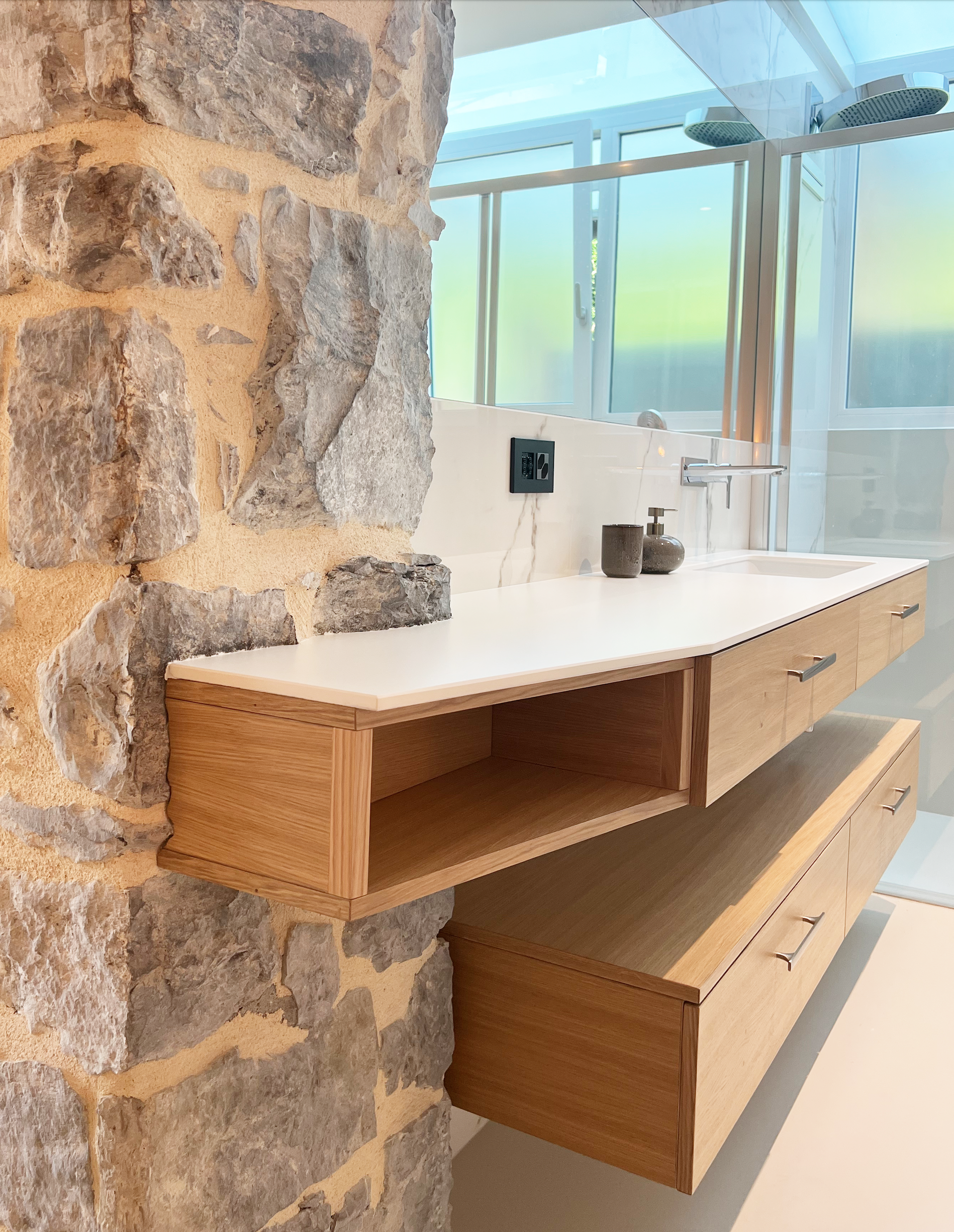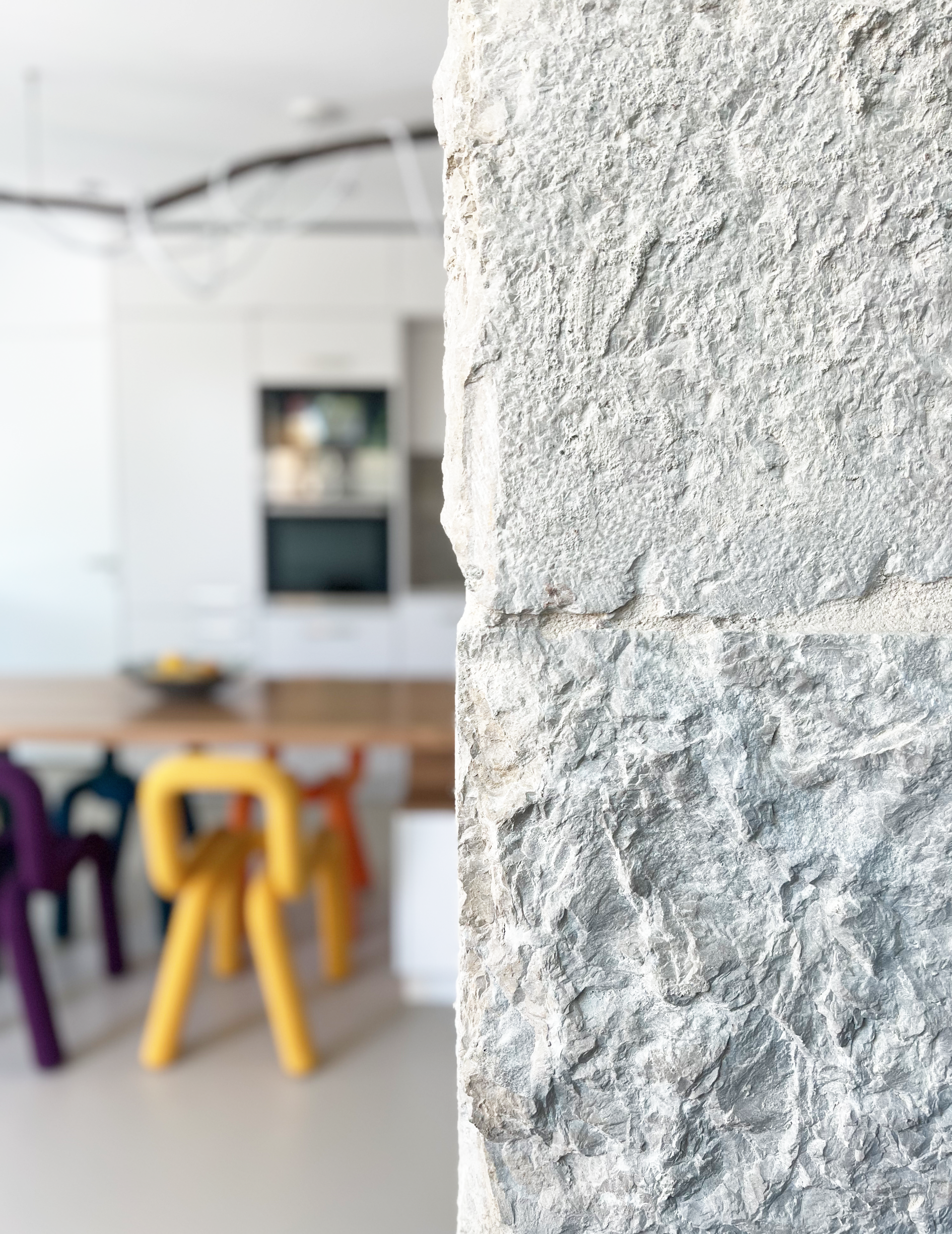 Une rénovation audacieuse où le charme brut de la pierre rencontre la modernité du design contemporain.