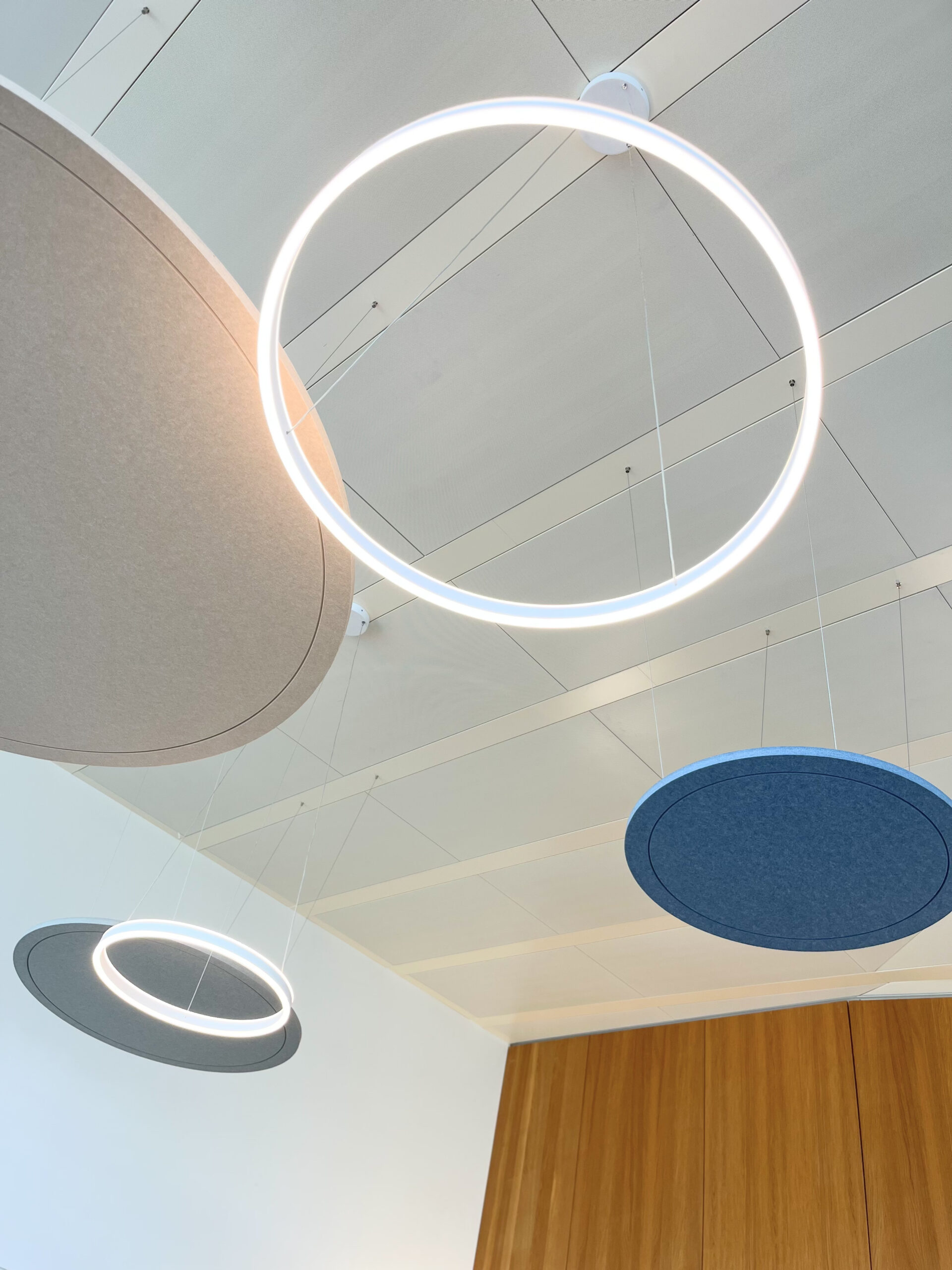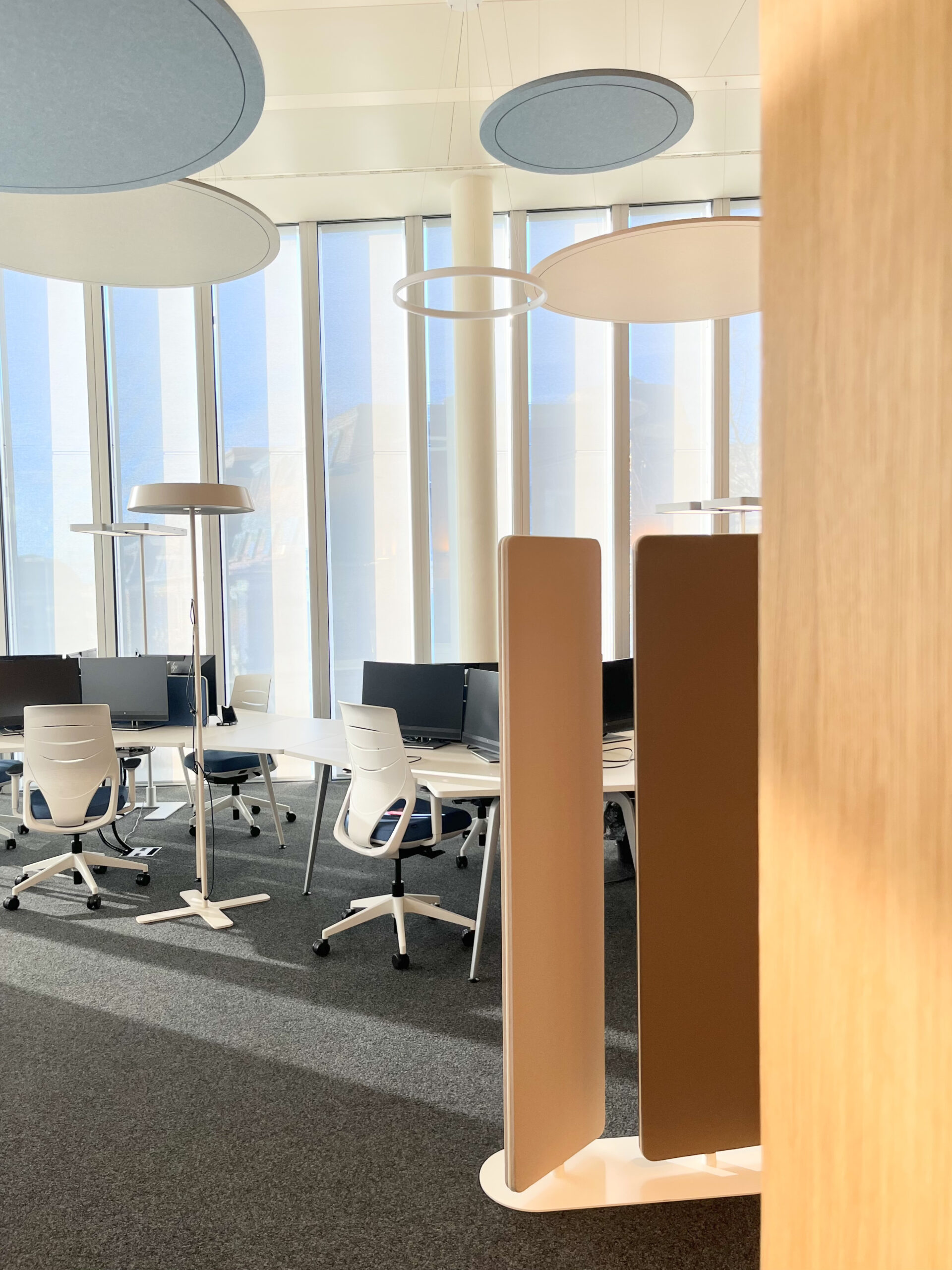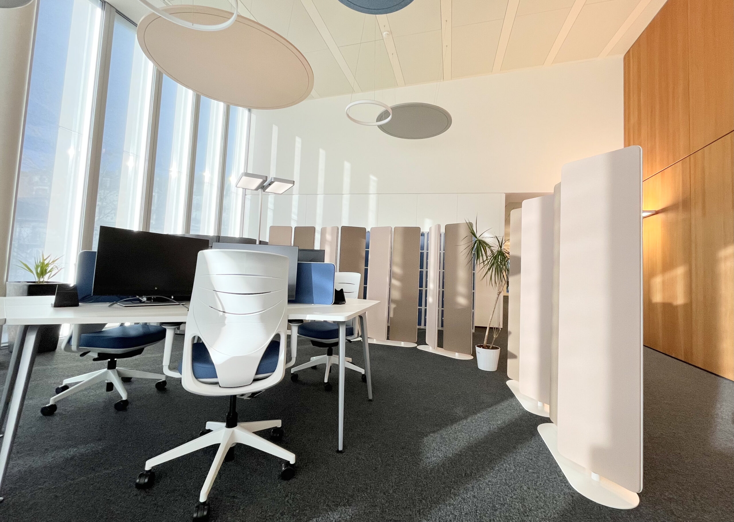 • Traitement acoustique intégré pour garantir le confort sonore dans les zones collaboratives et les open spaces,
