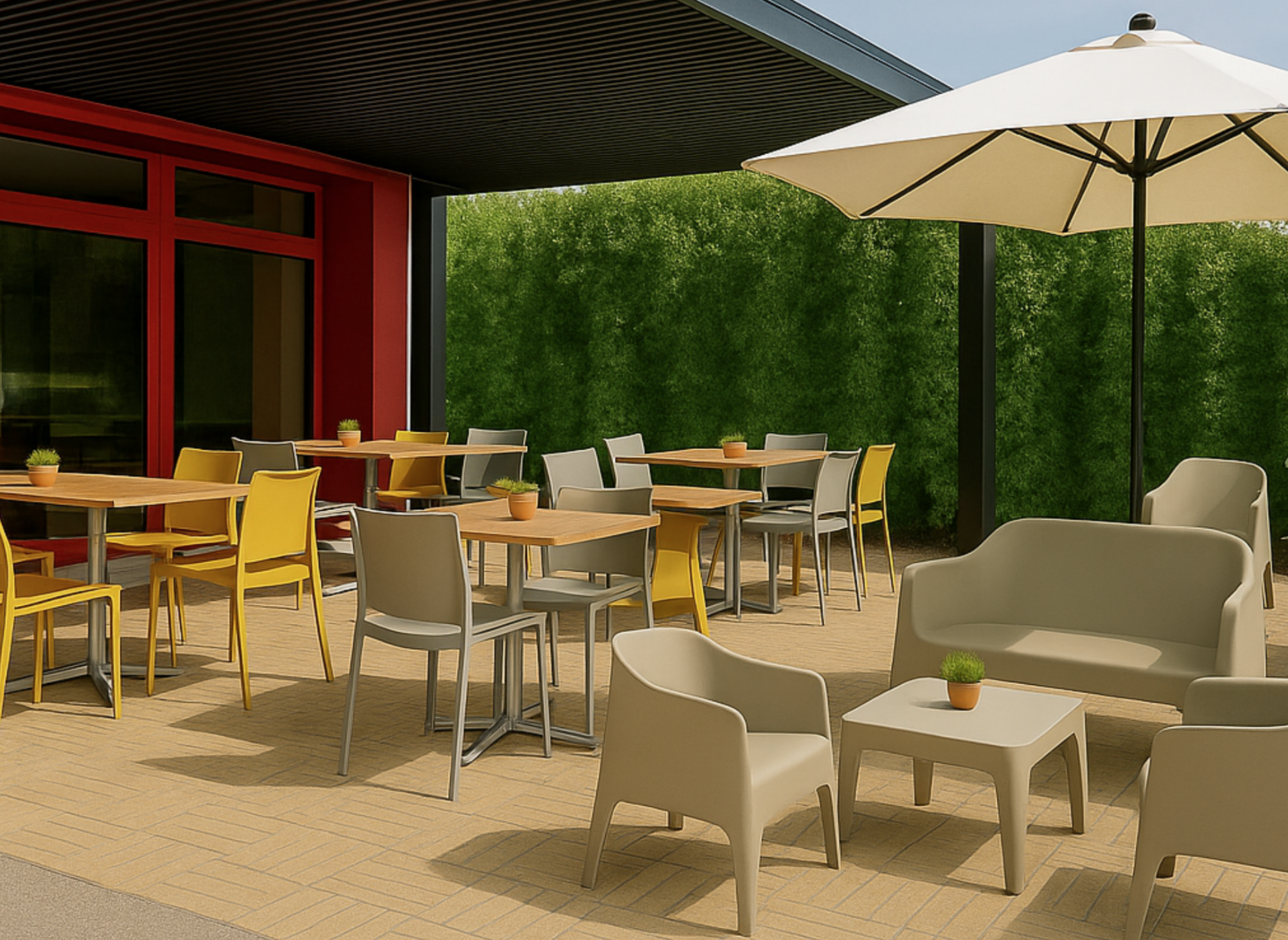 Mobilier convivial favorisant les échanges, les moments de pause et de restauration,